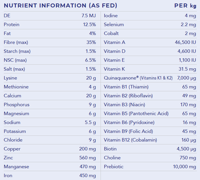 A cereal grain-free balancer pellet, designed for metabolic horses and ponies, formulated to be fed at a low daily rate.